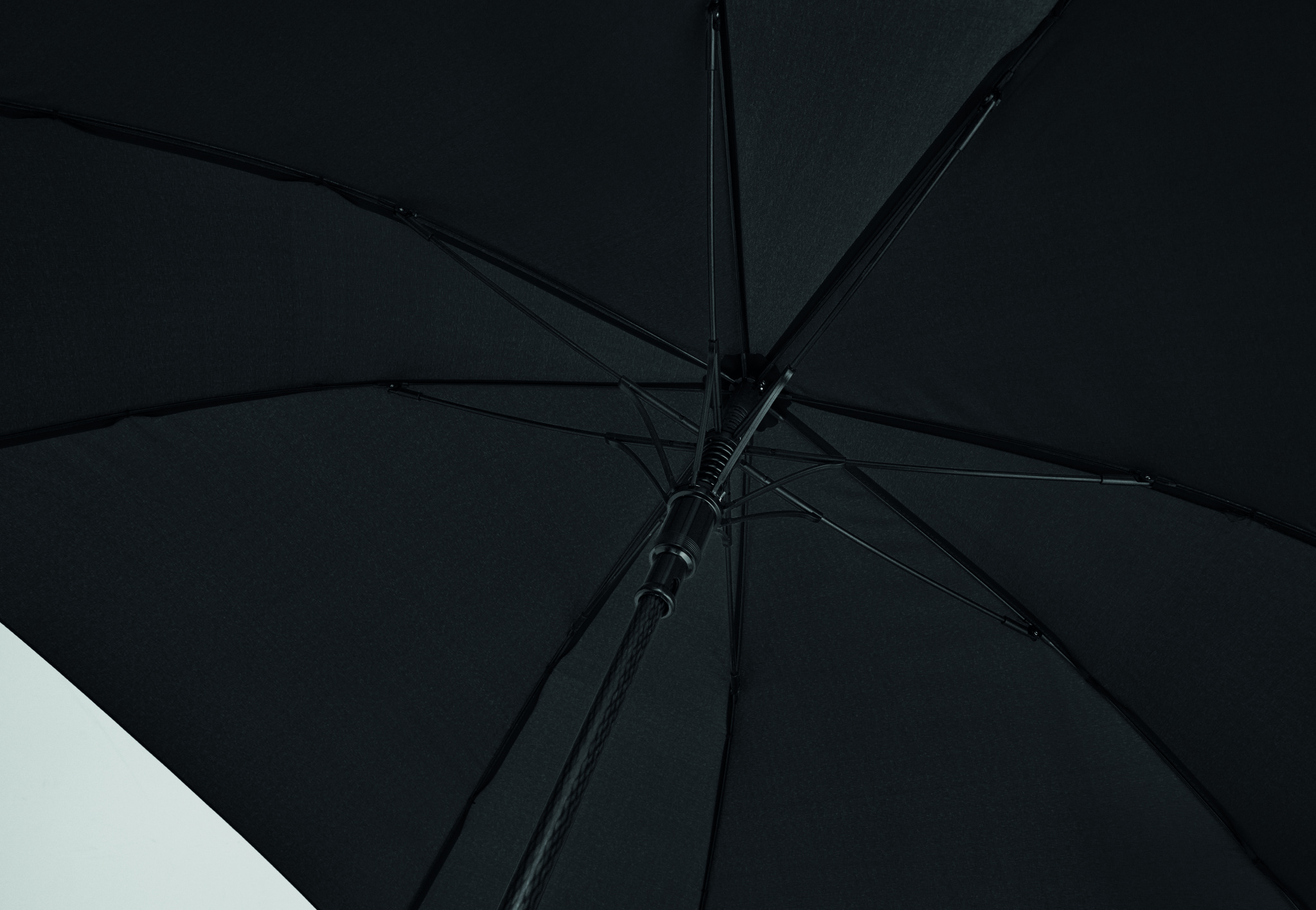 23'' Regenschirm in quadratischer Form aus 190T Pongee Polyester. Windbeständig. Gestell und Schienen aus Fiberglas. Griff aus gummiertem ABS. Automatische Öffnung.