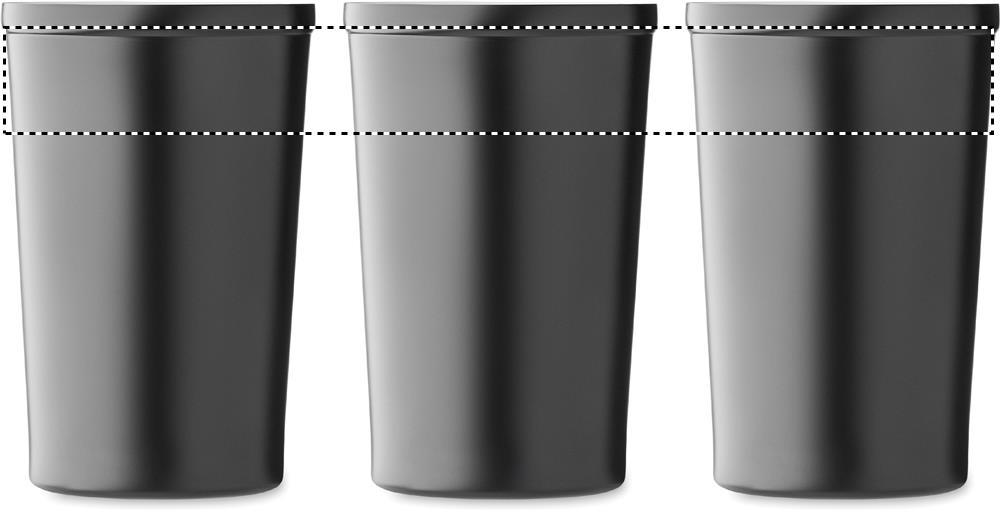 Doppelwandiger Trinkbecher aus recyceltem Edelstahl (90 % recycelter Edelstahl und 10 % Edelstahl) mit keramischer Innenauskleidung. Auslaufsicher. Füllmenge: 450 ml.
