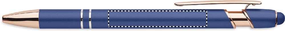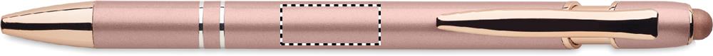 Druckkugelschreiber mit Stylus aus recyceltem Aluminium mit rosé goldenen Details. Blaue Tinte.