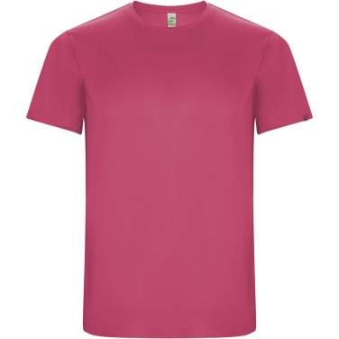 Funktions-T-Shirt aus recyceltem Polyester CONTROL DRY. Rundhalsausschnitt mit farblich abgesetzten Nähten. ECO-Logo-Etikett am Ärmel. Verpackung aus Recyclingmaterial. Herausnehmbares ECO-Etikett. Verpackung aus Recyclingmaterial. Technisches Gewebe. Das Modell ist 180 cm groß und trägt Größe M.