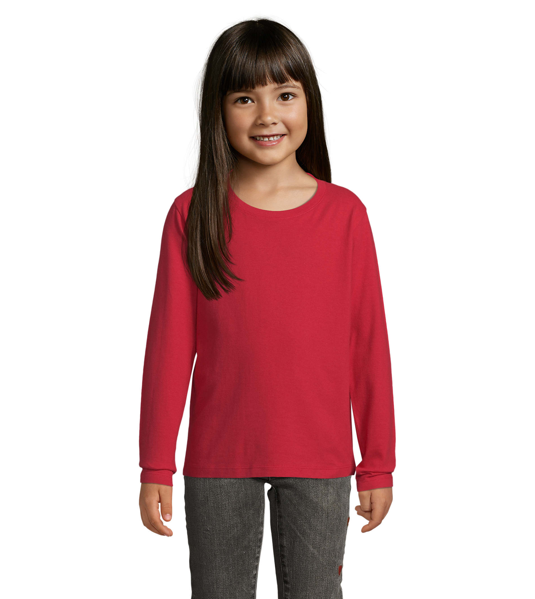 SOL'S IMPERIAL Kinder T-Shirt 190g. Verstärktes Nackenband. Rippkragen. Rundhalsausschnitt. Langarm. Seitennähte. Material: 100% halbgekämmte Baumwolle Ringspun. OEKO-TEX®. Verkauf nur inklusive Werbeanbringung.
