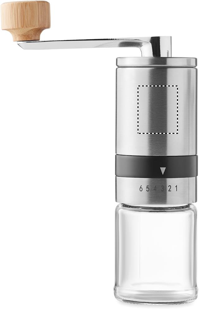 Kaffee-Set. Bestehend aus einem Kaffeebereiter aus Glas und Edelstahl und einer manuellen Keramik-Kaffeemühle mit Details aus Bambus. Füllmengen: Kaffeemaschine 350 ml, Mühle 100 ml.