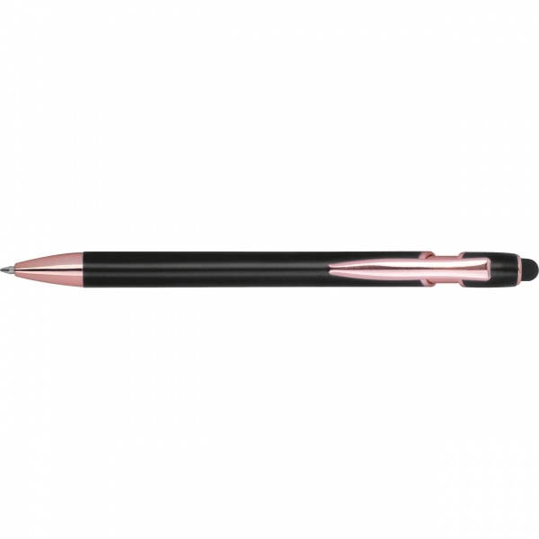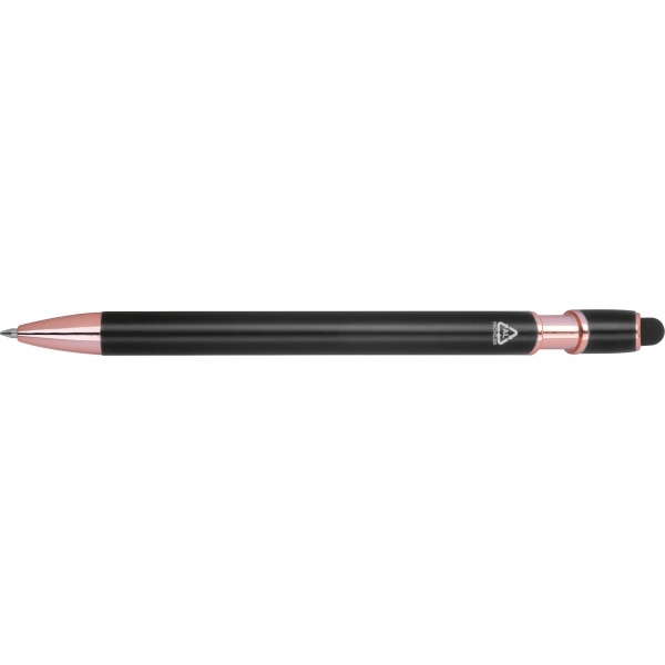 Semi-Gelschreiber aus recyceltem Aluminium mit Touchpen und blauschreibender Großraummine (1 mm Spitze). Ihre Werbung wird mittels Lasergravur auf den Schaft aufgebracht.