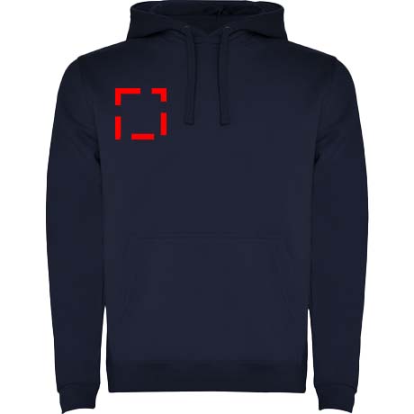 Kapuzenpullover mit doppeltem Stoff, verstellbarem Kordelzug in Kontrastfarbe, verstärkten und verdeckten Nähten am Kragen und Kängurutasche. Verfügbar in Zweifarbig und Uni. Elastischer 1×1-Rippstrick an Ärmeln und Bund. Abnehmbares Etikett. Das Modell ist 185 cm groß und trägt Größe M.