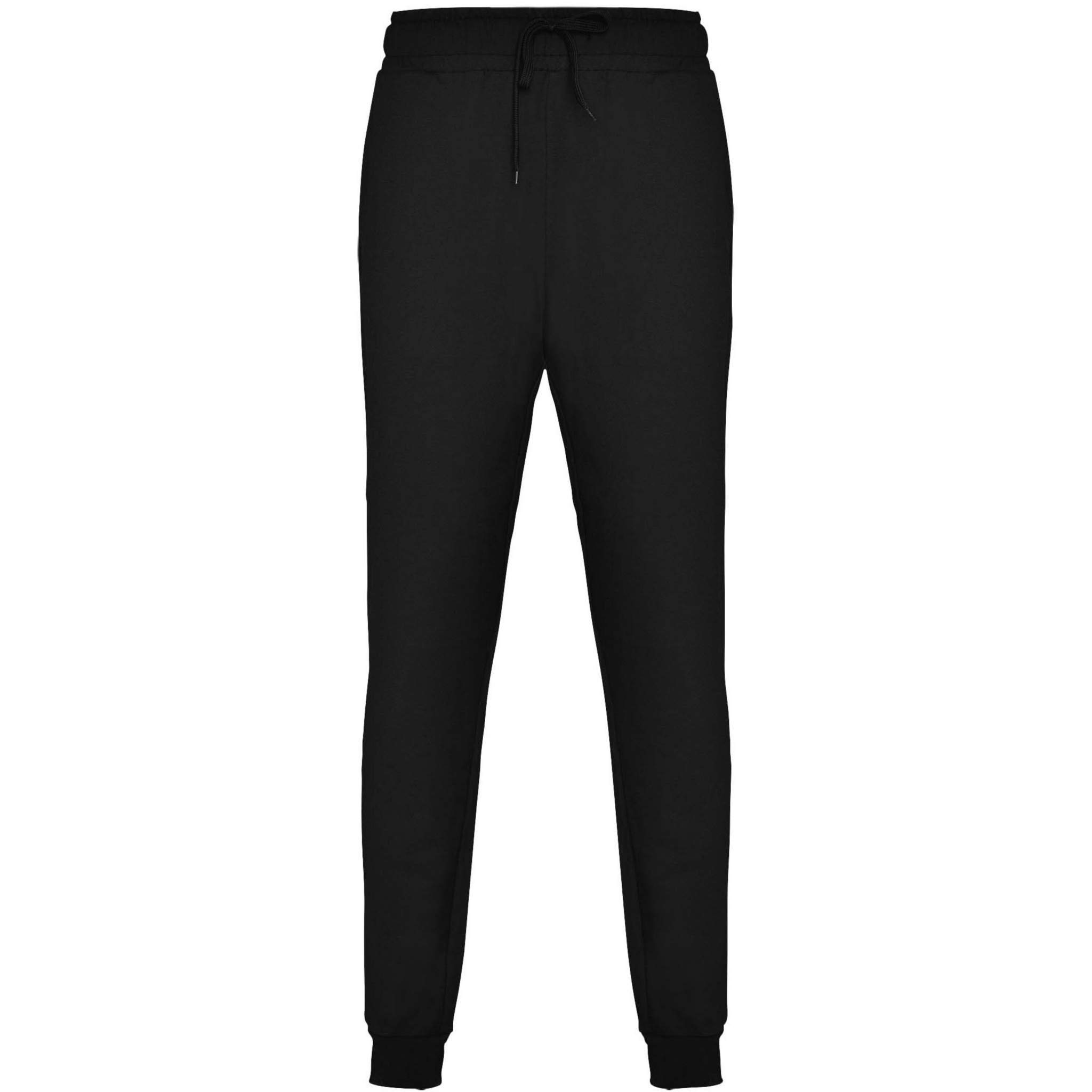 Sports trousers with wide adjustable waistband, drawcord, fitted cuffs on legs, reinforced seams, ribbed side pockets and corner back pocket with stitched view. Removable label.