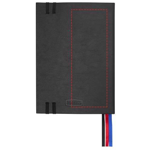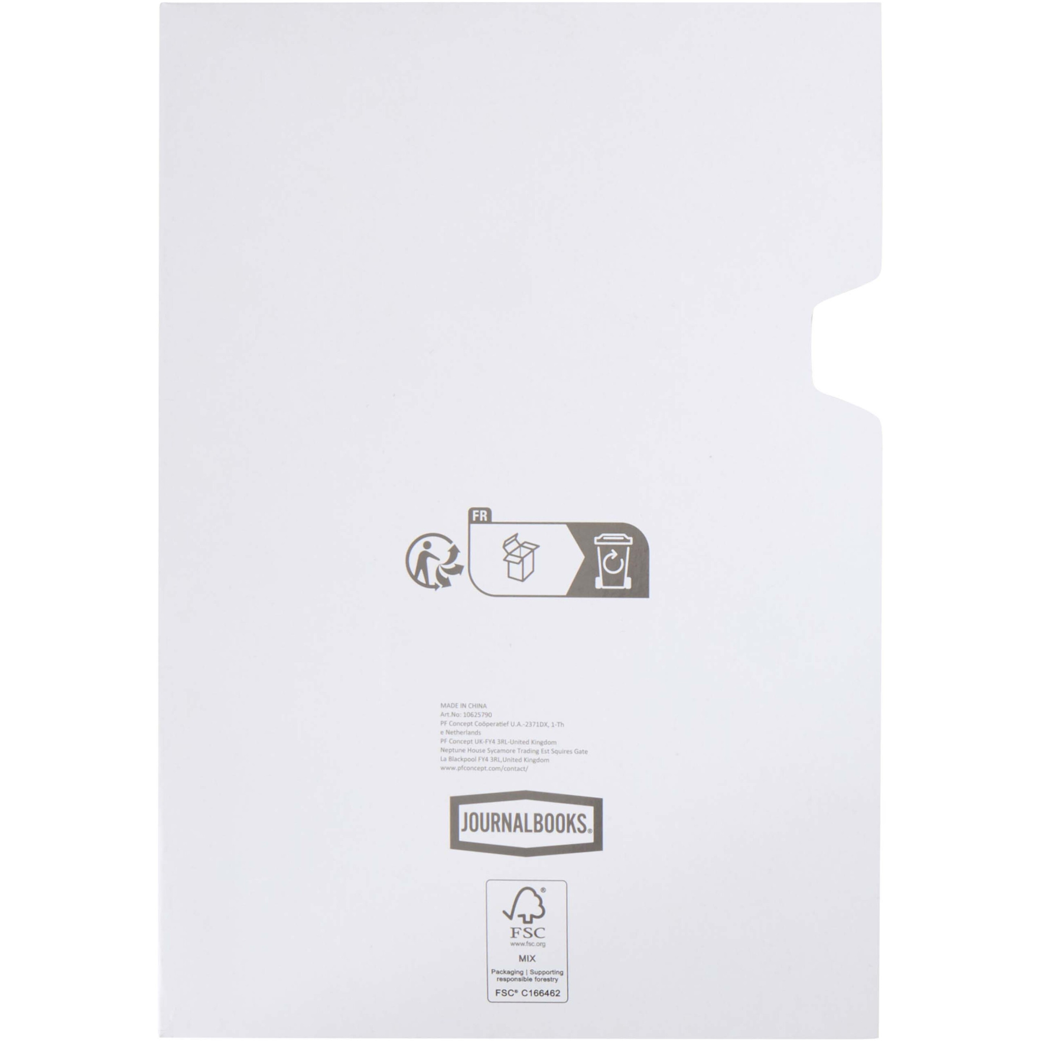 The Alder A5 notebook is made from recycled leather-like plastic and includes 192 sheets of 80 g/m² cream-coloured paper with a daily planner layout, perfect for journaling and staying organised throughout the year. It features two elastic bands, three ribbon bookmarks (black, red, and blue), 200 colourful small sticky notes (40 each colour), and a handy paper pocket for loose notes. Finished with a debossed JournalBooks logo on the back cover and presented in a white paper sleeve.
