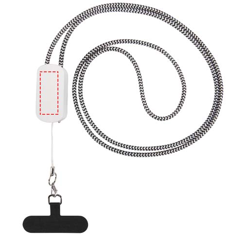 Stay charged and connected on the go with the Anser smartphone lanyard. Made from recycled materials, it includes a built-in 27W 5-in-1 charging cable with USB-A and Type-C input and Type-C and Lightning output. A transparent insert secures your phone through its case, combining hands-free convenience with fast charging in one practical accessory.