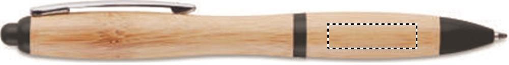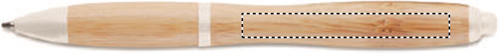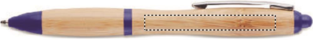 Push button ball pen with bamboo barrel and ABS fittings. Blue ink. Bamboo is a natural product, there may be slight variations in colour and size per item, which can affect the final decoration outcome.