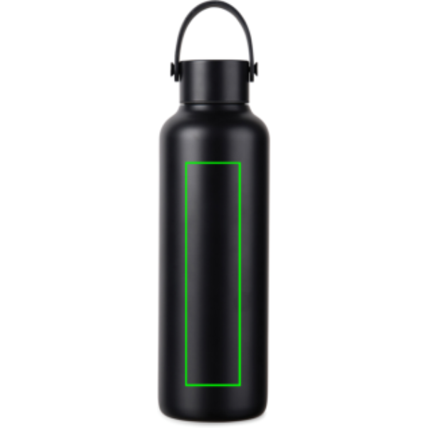 This double wall vacuum bottle, crafted from RCS certified recycled stainless steel, offers both performance and style. Designed with a minimalistic PU handle and black details that capture the essence of Baltimore series. The double walled insulation maintains drink temperatures cold for up to 12 hours, and hot for up to 6 hours, whether you need to stay cool with a chilled drink or enjoy a warm beverage on the go. Not dishwasher or microwave safe, only handwash. Certified by RCS (Recycled Claim Standard), RCS certification guarantees that the entire supply chain of recycled materials is certified. The total recycled content is based on the overall product weight. This product contains 80% RCS certified recycled stainless steel.