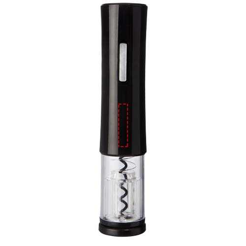 Electric wine opener that features a foil cutter. It works with 4 AA batteries (not included).
