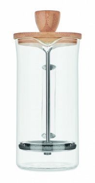 Coffee set. Including glass and stainless steel cafetiere and manual ceramic coffee grinder with bambo details. Capacity: cafetiere 350ml, grinder 100ml.