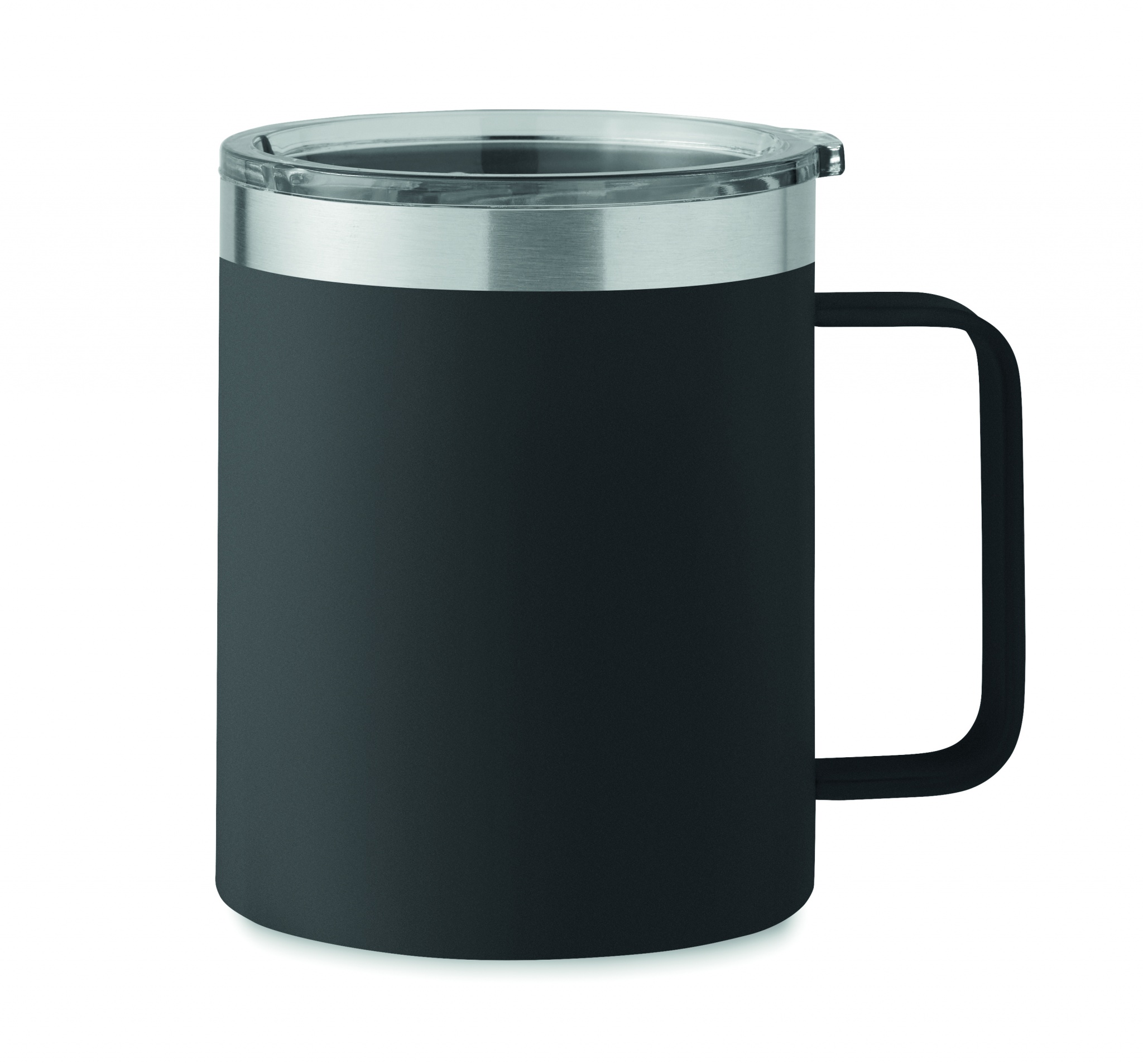 Double wall recycled stainless steel (90% recycled stainless and 10% stainless steel) mug with sliding sip hole cover. Capacity: 300 ml.