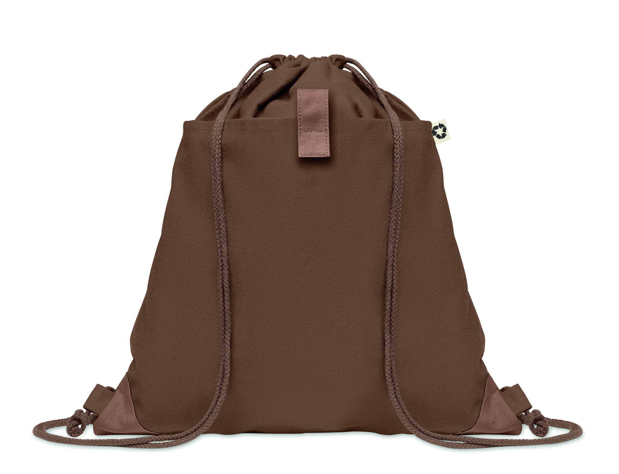 Recycled cotton drawstring bag with natural cords 50% cotton and 50% recycled cotton. 220 gr/m².