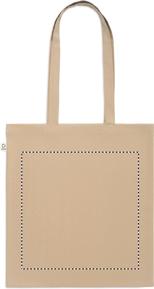 Recycled pre-consumer cotton shopping bag (70% recycled cotton and 30% RPET) with long handles. 140 gr/m².