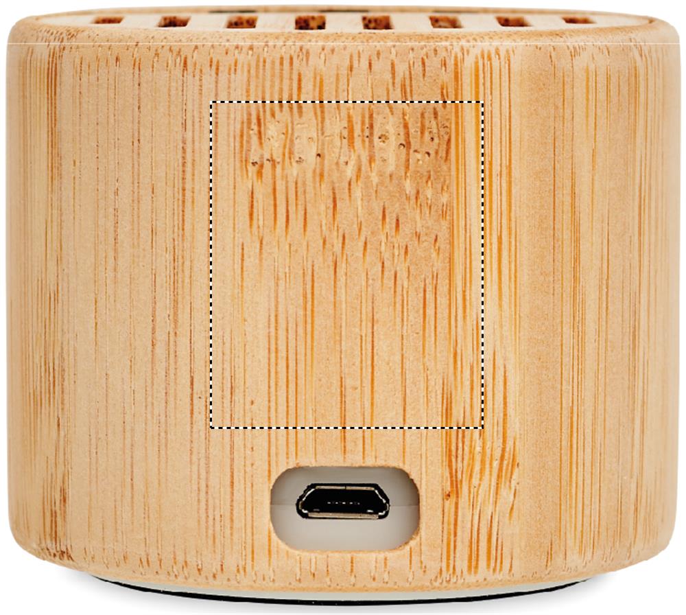 5.3 wireless speaker in ABS with bamboo casing and LED light indication. 1 Rechargeable Lithium 300 mAh battery included. Output data: 3W, 4 Ohm and 5V. Playing time approx.. 4h. Bamboo is a natural product, there may be slight variations in colour and size per item, which can affect the final decoration outcome.