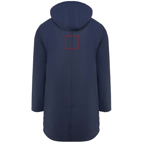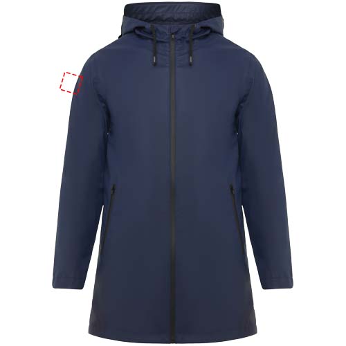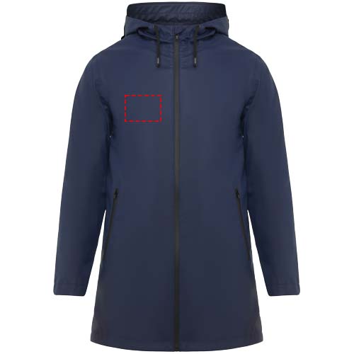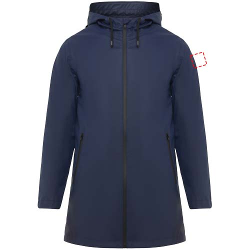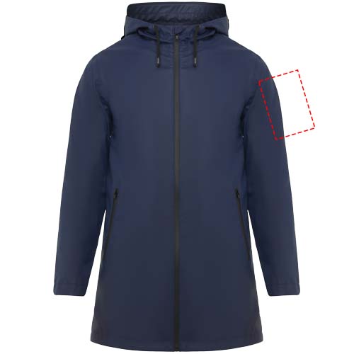 Waterproof raincoat. Hood with peak. Heat-sealed zips and seams. Contrasting details in black. Two side pockets with zip. Slit on back hem. Removable label. Waterproof. The model is 185 cm and is wearing size M.