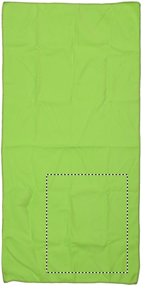 Sports towel presented in nylon pouch with adjustable closing. Towel: 70% polyester, 30% polyamide.