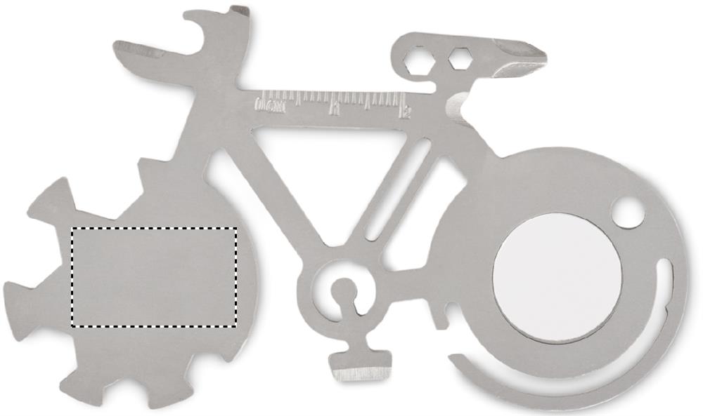 Multi-tool 11-in-1 stainless steel bicycle shaped. From bottle opener, knife, ruler or Phillips screwdriver tools.
