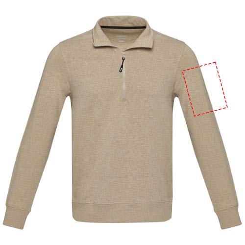 The Tin unisex Aware™ quarter zip sweater is made from 50% organic cotton and 50% recycled cotton. The functional quarter-zip design adds versatility and convenience, allowing you to easily layer the sweater and adjust comfort. The sweater incorporates Cyclo® recycled fibres where they use pre-sorted waste that determines the colour of the yarn. These fibres do not only reduce the demand for virgin resources but also exhibit a commitment to a circular life, embodying the essence of reducing waste and promoting a closed-loop system. Each sweater also comes with an Aware™ tracer. This innovative feature allows users to trace the origins and journey of their item through a QR code, enhancing transparency in the supply chain and fostering a stronger connection between the product and its production process.