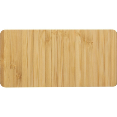 Bamboo tray with bamboo spoon, borosilicate glass mug (150ml) and a slot for sugar or chocolate etc. Your logo will be engraved onto the board.