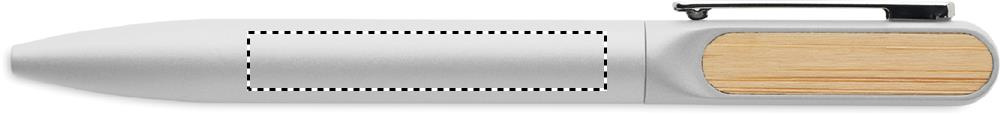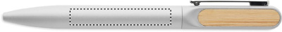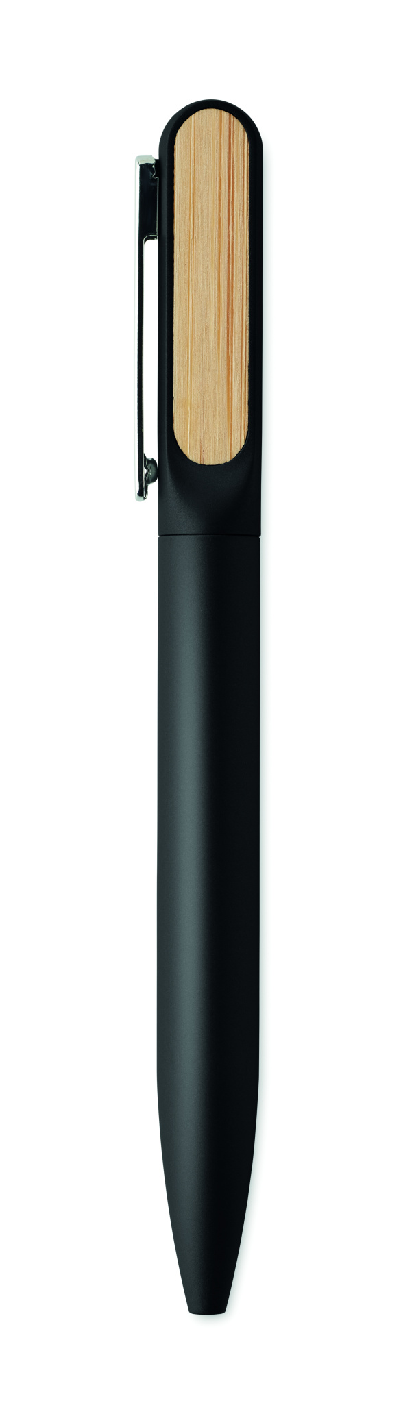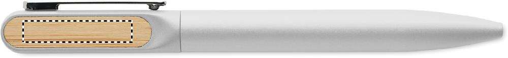 Twist ballpen with recycled aluminium barrel, recycled ABS twist part, and metal clip with bamboo detail. Blue ink.
