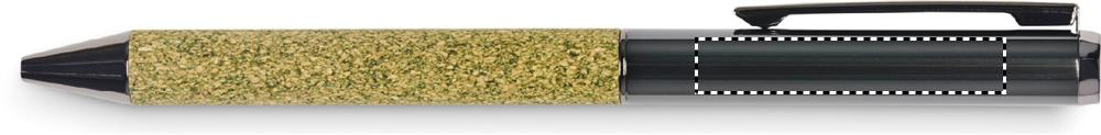 Twist metal ballpen with fabric on barrel made of 20% tea grounds, 30% cork, 50% polycotton cloth in carton box. Blue ink.