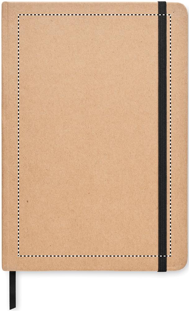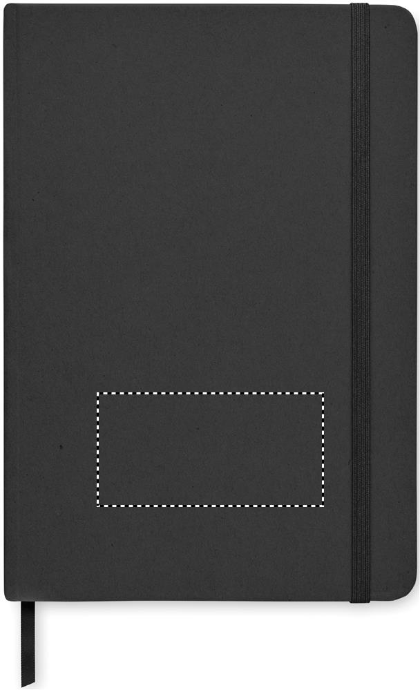 A5 märkmik kõva taaskasutatud pappkaanega. Casebound. 160 kivipaberiga vooderdatud lehte (80 lehte). Elastne sulgemisrihm ja lint-lehemarker.