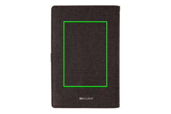Air 5W juhtmevaba laadimisega taastäidetav sülearvuti kate võimaldab laadida nutitelefoni ilma kaabliteta. Pange telefon lihtsalt peale ja alustage laadimist! Kaasas on 80 cm mikro-USB-kaabel, et saaksite oma katte hõlpsalt ühendada mis tahes toiteallikaga. Kate on valmistatud polüestrist ja sellel on elastne sulgur. Sisemisel märkmikul on must pehme PU kaas ja 80 lehte/160 joonitud lehekülge kreemjas 70 grammi paberit. Sisend: 5V/2A - Juhtmeta väljund: 5V/1A. Registreeritud disain®