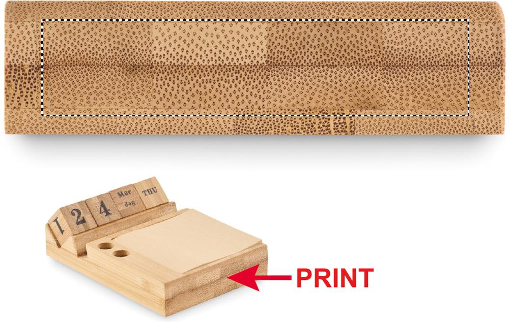 Bambusest lauakalender telefonihoidja funktsiooniga, 2 pliiatsihoidjat ja 50 kleepuvat märkmelehte.