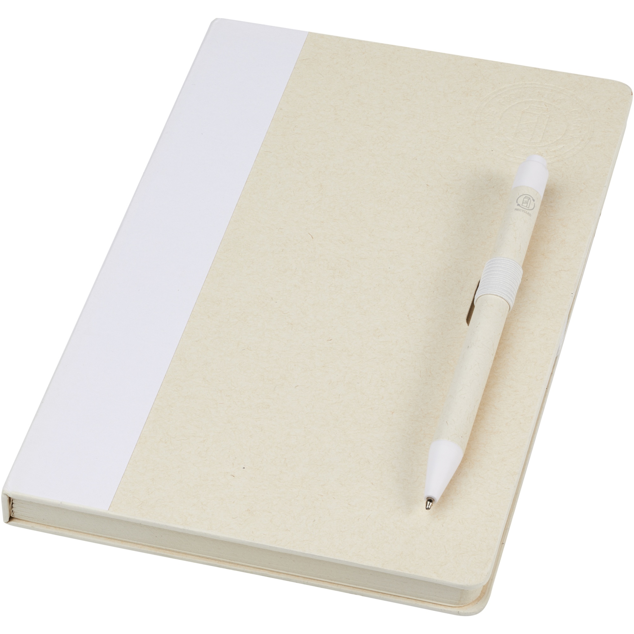 A5 suuruses teatmemärkmik ja pastapliiatsi komplekt. Märkmikus on 80 vooderdatud lehte (80 g/m²), mis on valmistatud taaskasutatud piimapakkidest (kuni 70%), värvilisest paberist seljaosa ja pliiatsi aas. Pliiatsi aasas on märkmikuga sobivas värvitoonis klõpsuga pastapliiats. Pliiatsi silinder on valmistatud samast taaskasutatud piimakarbi materjalist ning nupp, klamber ja ots on valmistatud värvilisest PLA plastikust. Pliiatsi sees on must täidis. Kasutatud piimapakke kogutakse, sorteeritakse, töödeldakse ja muudetakse paberiks, muutes jäätmed tõeliselt kasulikuks.