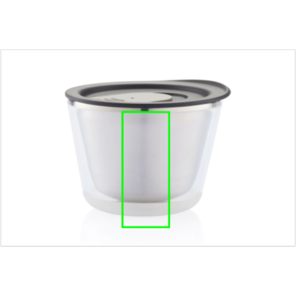 Suletav, isoleeritud ja piisavalt kompaktne, et mahuks kohvimasina alla (227 ml). See on ka väga hügieeniline, kuna kruusi vooder on valmistatud roostevabast terasest, mitte plastikust. Disainitud nii, et kruusi on lihtne taaskasutamiseks lahti võtta. Registreeritud disain®