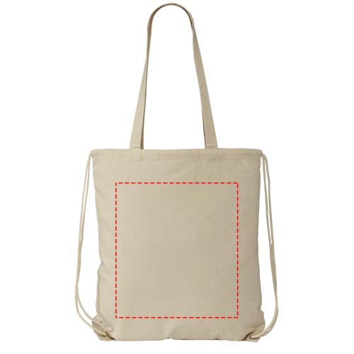 Multifunktsionaalne pikkade sangade ja nööriga puuvillane kott, mida saab kanda nii kandekotina kui ka seljakotina. Suur nööriga kinnituv põhisahtel. Sisaldab kahte rippkäepidet pikkusega 31 cm. Mahutavus: 1,5 L, vastupidavus kuni 5 kg kaal.