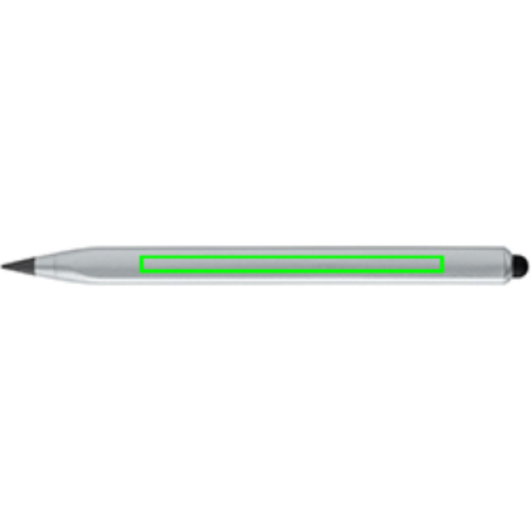 Moodne lõpmatuse pliiats, mis on valmistatud RCS-sertifikaadiga taaskasutatud alumiiniumist. Taaskasutatud kogusisaldus: 40% eseme kogukaalust. RCS-sertifikaat tagab taaskasutatud materjalide täielikult sertifitseeritud tarneahela. Kolmnurga kujuline korpus, mille ühel küljel on tähis CM ja teisel küljel tolli. Traditsioonilised puidust pliiatsid kirjutavad ainult kuni umbes 200 meetrit, kuid selle Tree vaba lõpmatuse pliiatsi pikkus on kuni umbes 20 000 meetrit, kasutades grafiidist joont grafiidist otsast. See mitte ainult ei kirjuta nagu pliiats, vaid ka märgiseid saab kustutada. See toimib nii, et jätab paberile grafiitjoone nagu tavaline traditsiooniline puidust pliiats, kuid kulub nii aeglaselt, et peaks vastu kuni 100 traditsioonilist puidust pliiatsit! Puutetundliku otsaga mobiilseadme kasutamiseks. Pakitud FSC® segupakendisse.
