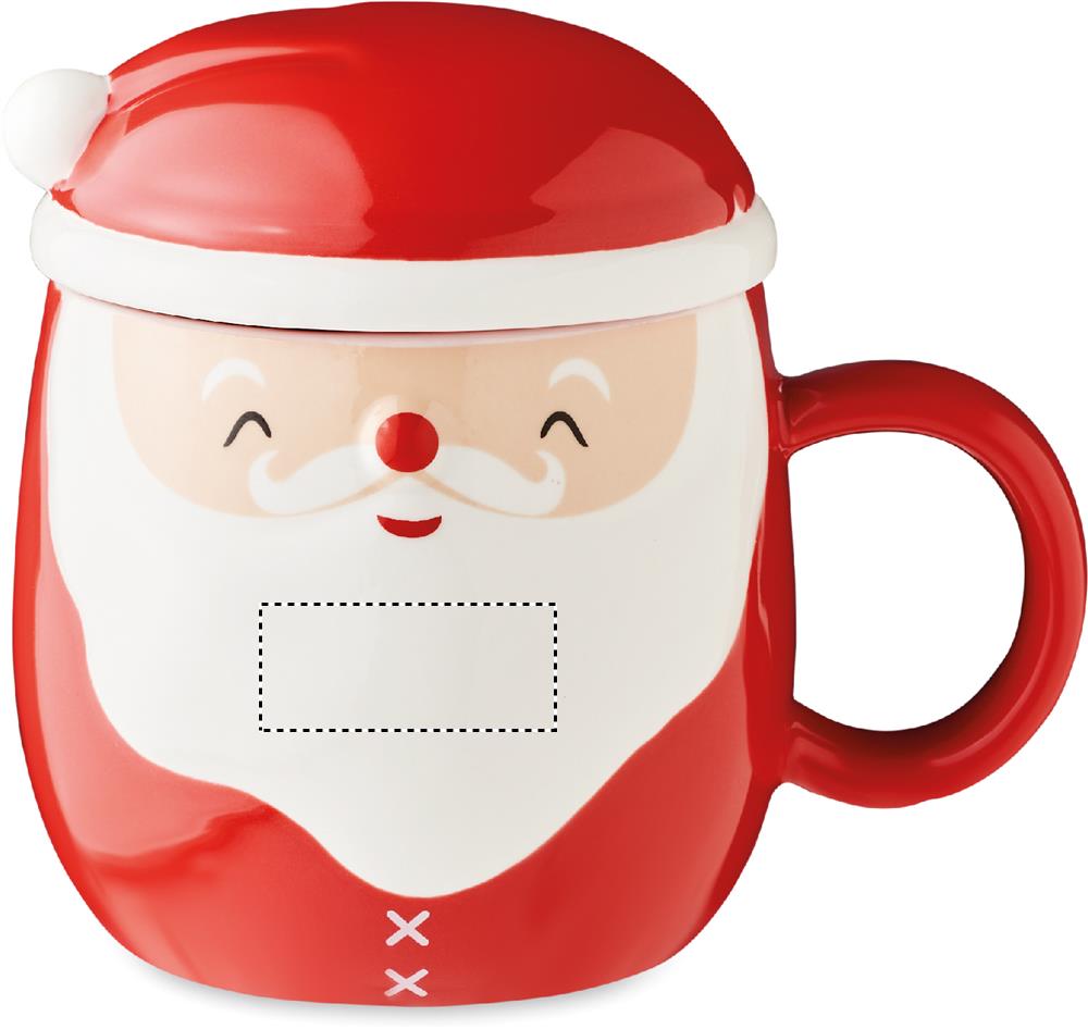 Jõuluvana kaunistuse ja kaanega keraamiline kruus. Mahutavus: 370 ml.