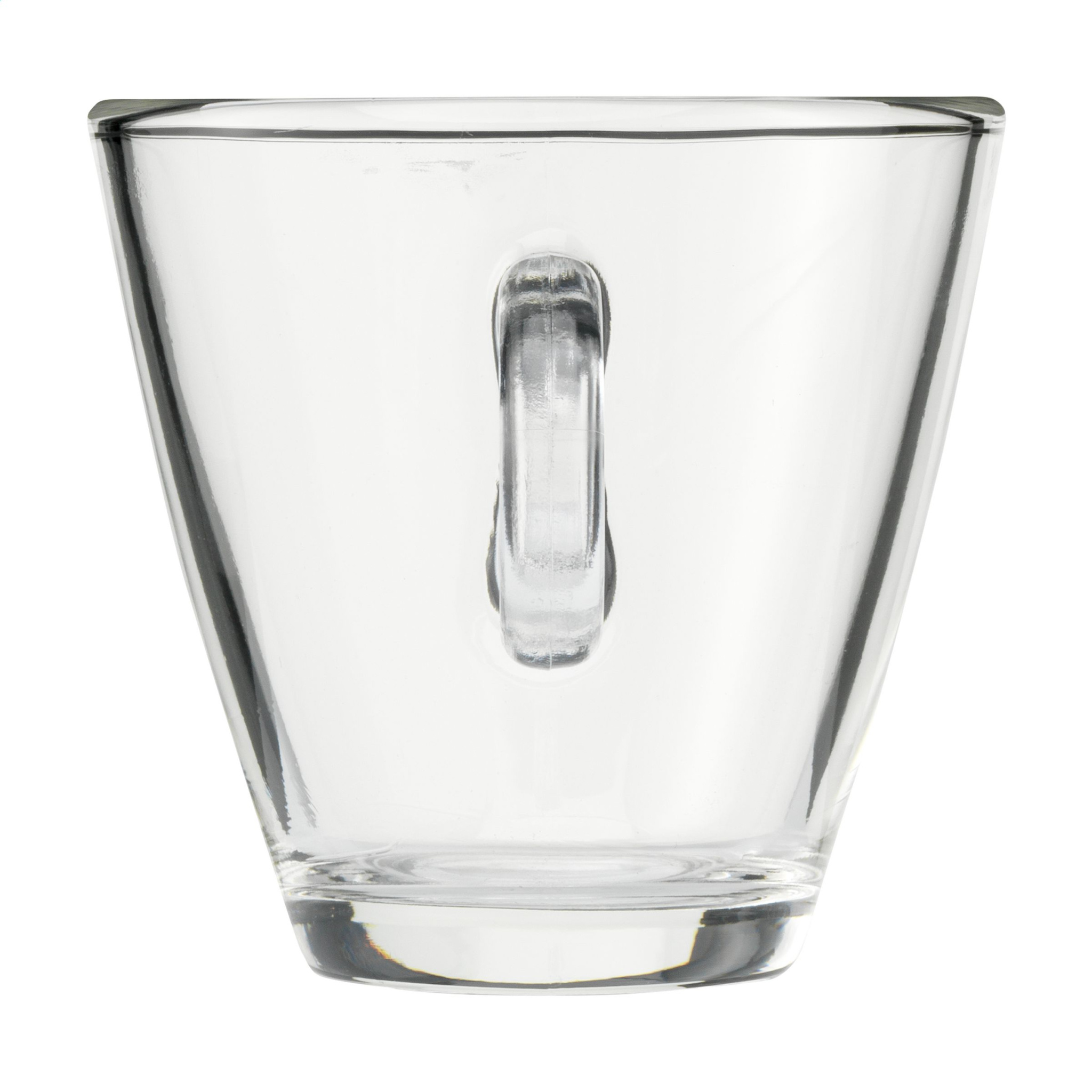 Kvaliteetsest karastatud klaasist valmistatud kohviklaas. Aegumatu kumera käepidemega mudel. Sobib kohvi ja cappuccino jaoks. Mahutavus 230 ml. Valmistatud Itaalias.