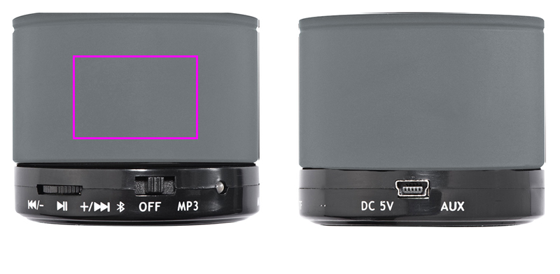 Mini Bluetooth-kõlar USB-pordiga laadimiseks, ulatus kuni 10 meetrit, laadimisaeg umbes 2h ja tööaeg kuni 1,5 tundi. Teie logo laseritakse kõlarile.
