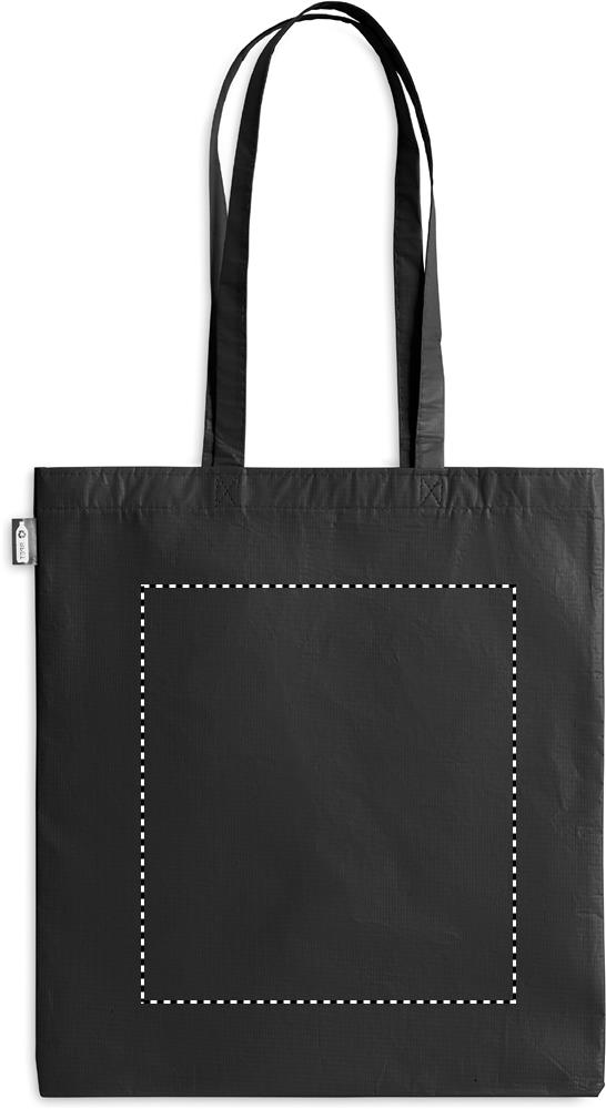RPET lamineeritud lausriidest ostukott pikkade sangadega. 100 gr/m².