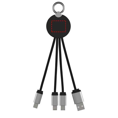 Kummist ja metallist viimistlusega valgustatud logoga laadimiskaabel, millel on kolm pistikut (C-tüüp, Android, iPhone). Üheaegselt saab laadida kuni kolme seadet. Kaablite pikkus (koos pistikutega): 10 cm. Taaskasutatud PET-plastist kaabel ja pakend on valmistatud taaskasutatud paberist ja taaskasutatud plastist.