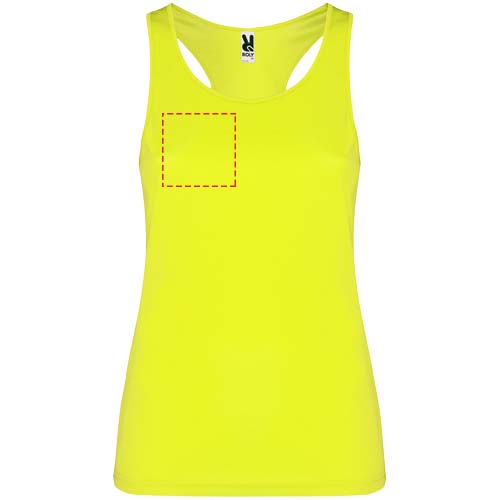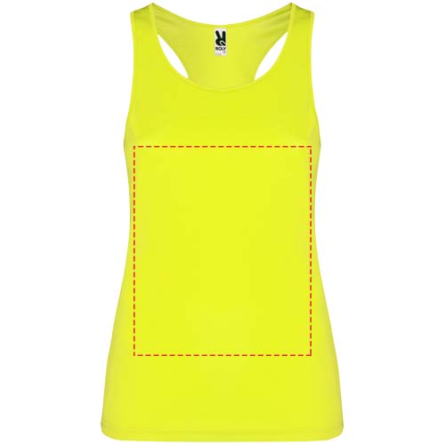 Tehniline, hingav, kergesti pestav ja kergesti kuivav kangas. Soonilised käeaugud ja kaelus. Racerback ja küljeõmblused. Eemaldatav etikett.