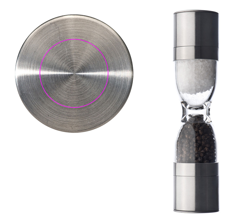 Vürtsitage seda! Täiustage oma kliendisuhet selle toreda 2-ühes soola- ja pipraveskiga. Roostevabast terasest ja plastist valmistatud veskil on kaks reguleeritavat keraamilist veski. Kare sool ja värske pipar on kergesti jahvatatud. Graveerime teie logo ühele küljele ühele roostevabast terasest kaanele. Ühekordselt pakendatud karpi.
