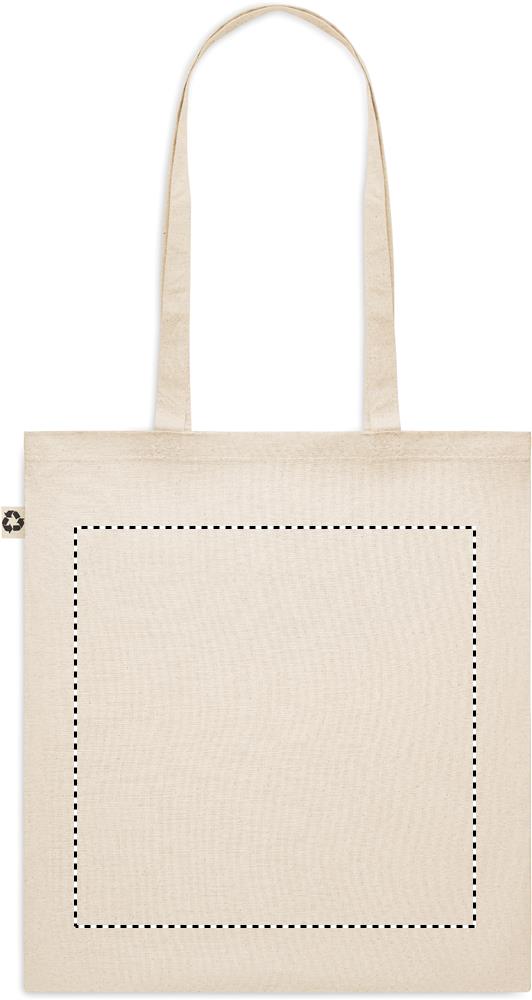 Tarbimisjärgsest taaskasutatud puuvillasest ostukott (65% taaskasutatud puuvill, 35% tavaline puuvill) pikkade sangadega. 140 gr/m².