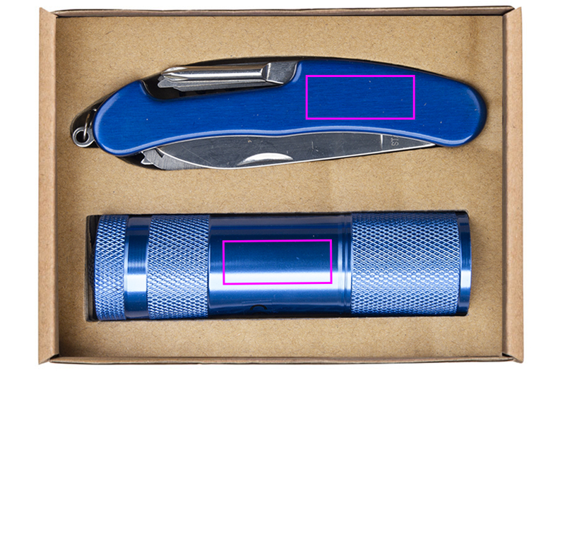 Komplekt, mis koosneb üheksa LED-iga alumiiniumist taskulambist ja taskunoast. Laserime teie logo taskulambile ja taskunoale samas suuruses. Kaasas kolm AAA patareid.
