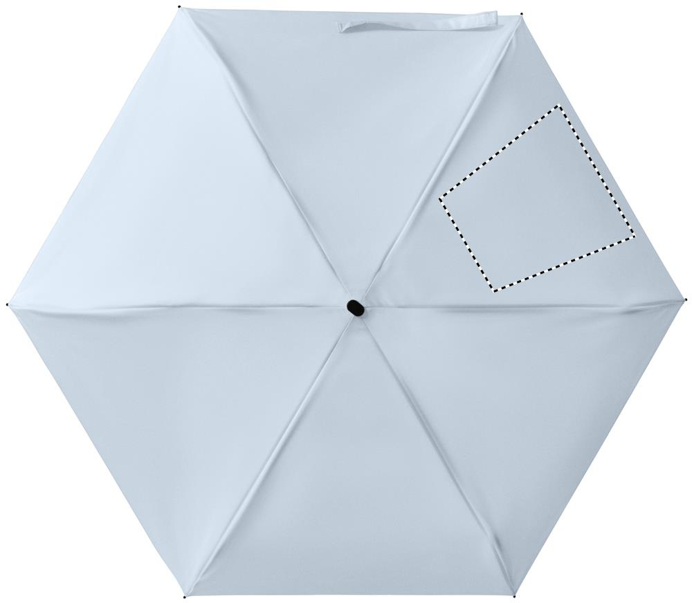 19” manuaalisateenvarjo, valmistettu 190T pongeesta ja mukana säilytyspussi. Tuulenpitävä runko metallia ja lasikuitua, musta kumipintainen kahva rannelenkillä. Kompakti, taitettuna 17 cm.