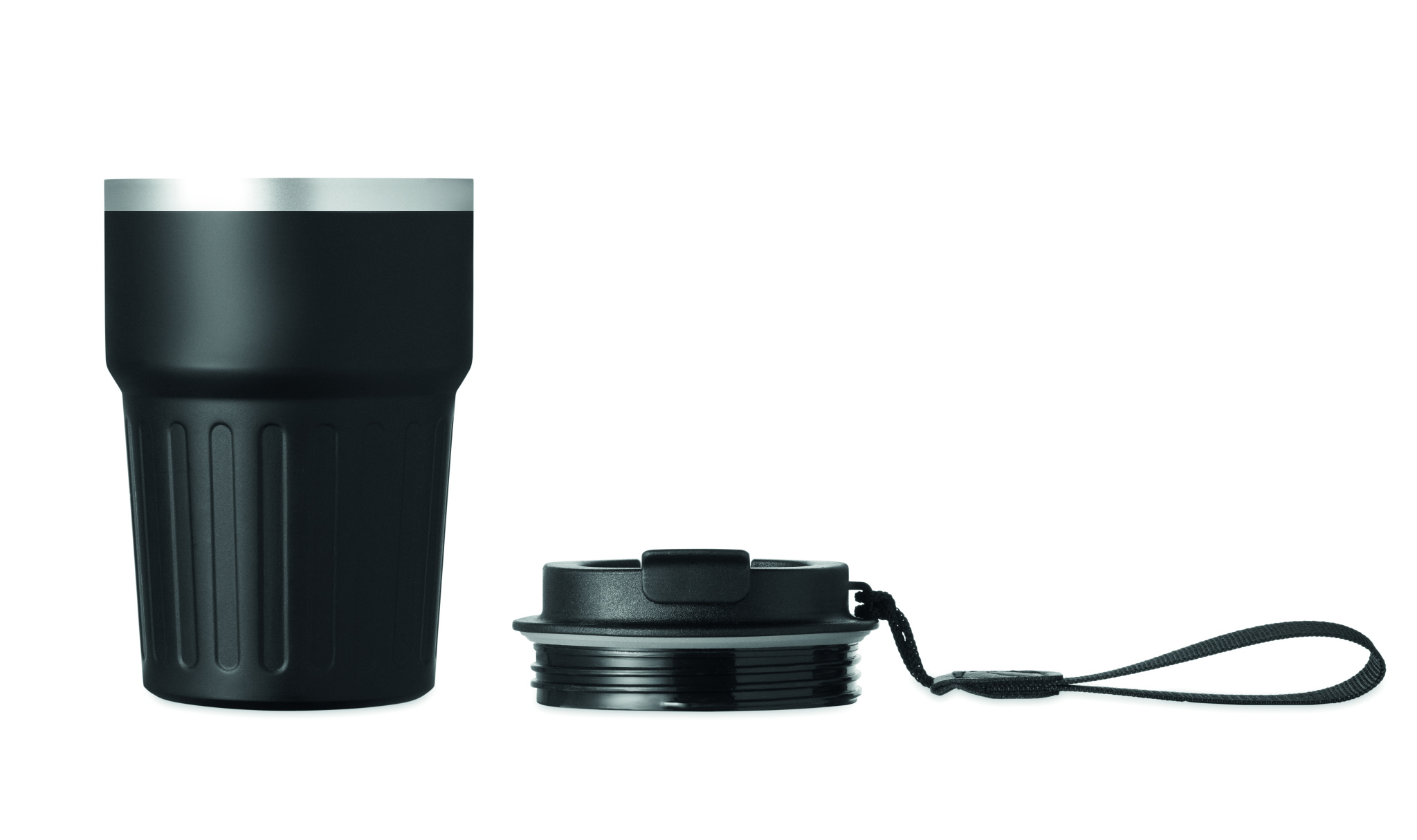 A5-muistikirja, kierrätysalumiinista valmistettu kuulakärkikynä ja 350 ml:n kaksiseinäinen kierrätetty ruostumattomasta teräksestä valmistettu juomamuki, jossa on PP-kansi ja hihna. Lahjapakkauksessa.