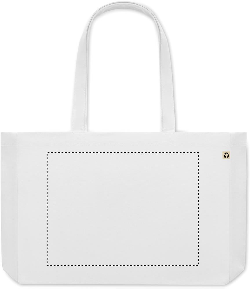 280 gr/m² kierrätetty canvas kassi, pitkillä kahvoilla ja pohja levikkeellä. Tuote on valmistettu 50% puuvillasta ja 50% kierrätetystä puuvillasta.