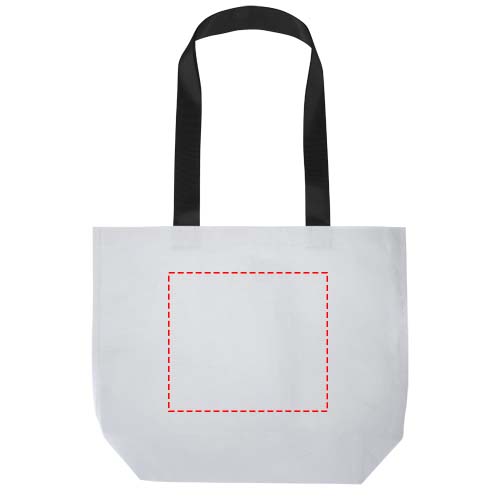 Kaksinkertaisella, laminoidulla pohjalla varustettu Duo-kassi on valmistettu 150 g/m2:n GRS-sertifioidusta kaksoislaminoidusta RPET-materiaalista, ja se on kestävä ja veden pitävä. Siinä on tilava avoin päälokero, tukevat, vahvistetut kahvat ja leveä pohja lisäkapasiteettia varten. Kantokyky jopa 10 kg. Kassi on tyylikäs ja luotettava vaihtoehto päivittäisille ostoksille, messuille tai mainostilaisuuksiin. Tilavuus: 18 litraa.