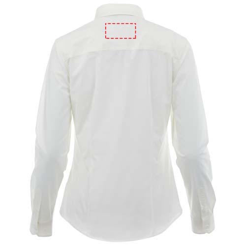 Hamell pitkähihainen naisten stretch-paita - ihanteellinen yhdistelmä tyyliä ja mukavuutta. Tässä kudotussa paidassa on kevyt popliinikangas, jossa on 97 % puuvillaa ja 3 % elastaania. Popliinikangas on tunnettu tiiviistä rakenteestaan, joka takaa poikkeuksellisen kestävyyden säilyttäen samalla pehmeän ja sileän tuntuman ihoa vasten. Tämä tarkoittaa, että Hamell-paita ei ole ainoastaan mukava päällä, vaan se kestää myös jokapäiväistä kulutusta ja takaa pitkäaikaisen käytön. Joustavuus tarjoaa äärimmäistä liikkumisvapautta, mikä takaa optimaalisen mukavuuden koko päivän ajan. Piilotettu nappikaulus lisää hienostuneisuutta säilyttäen samalla siistin ilmeen. Muotoonleikattu naisille istuvuuden takaamiseksi.