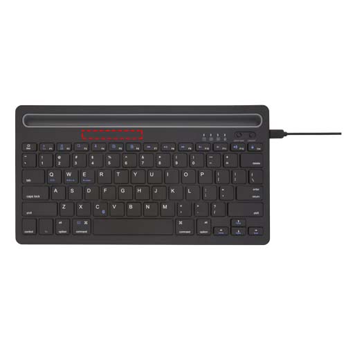 Kompakti QWERTY-näppäimistö, jossa 78 näppäintä. Bluetooth® 3.0 kaksikanavaisella tuella, mikä mahdollistaa yhteyden muodostamisen kahteen laitteen samanaikaisesti. Integroitu telakointiteline puhelimelle ja tabletille. Näppäimistö on yhteensopiva PC:n/kannettavan, tablettien, matkapuhelimien, älytelevisioiden ja muiden Bluetooth®-laitteiden kanssa. Toimintaetäisyys on jopa 10 metriä. Sisäänrakennettu 150 mAh:n ladattava akku riitttää vähintään 40 tunnin käyttöön ja valmiustilassa kuuteen kuukauteen. Lataaminen kestää noin kolme tuntia. Toimitetaan korkealaatuisessa voimapaperipakkauksessa, jossa on värikäs tarra.