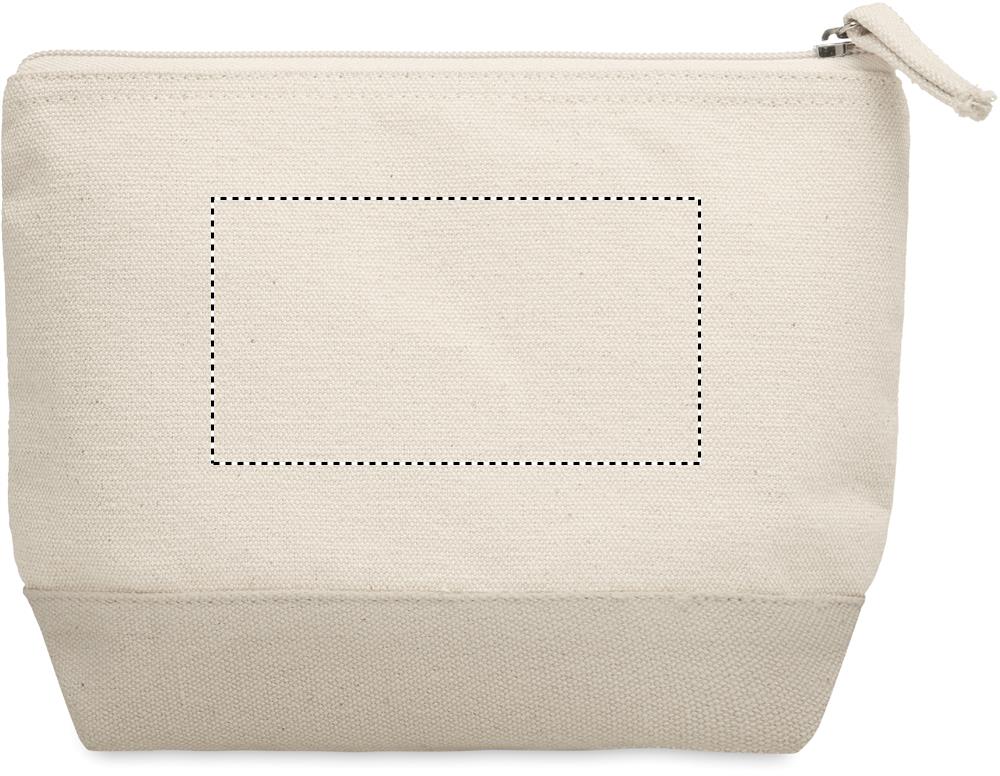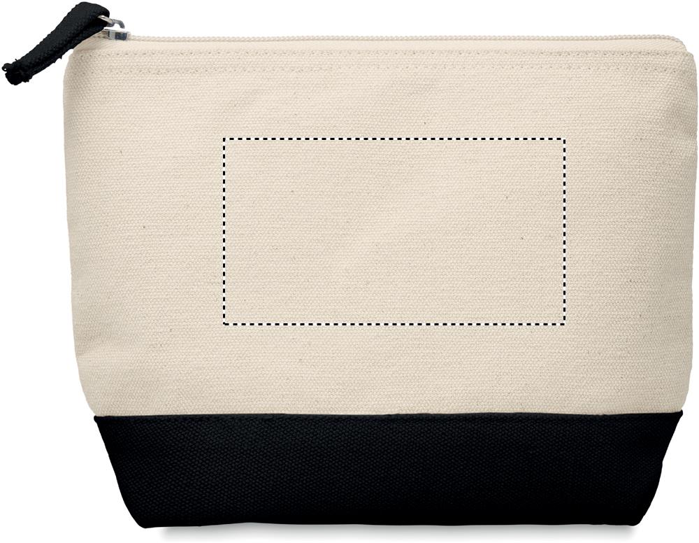 340 g/m² puuvilla kosmetiikkalaukku värillisellä pohjalla ja väriltään yhteensopivalla vetoketjulla.