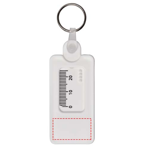 Kym kierrätetystä materiaalista valmistettu renkaan kulutuspinnan tarkistukseen käytettävä avaimenperä, Valkoinen